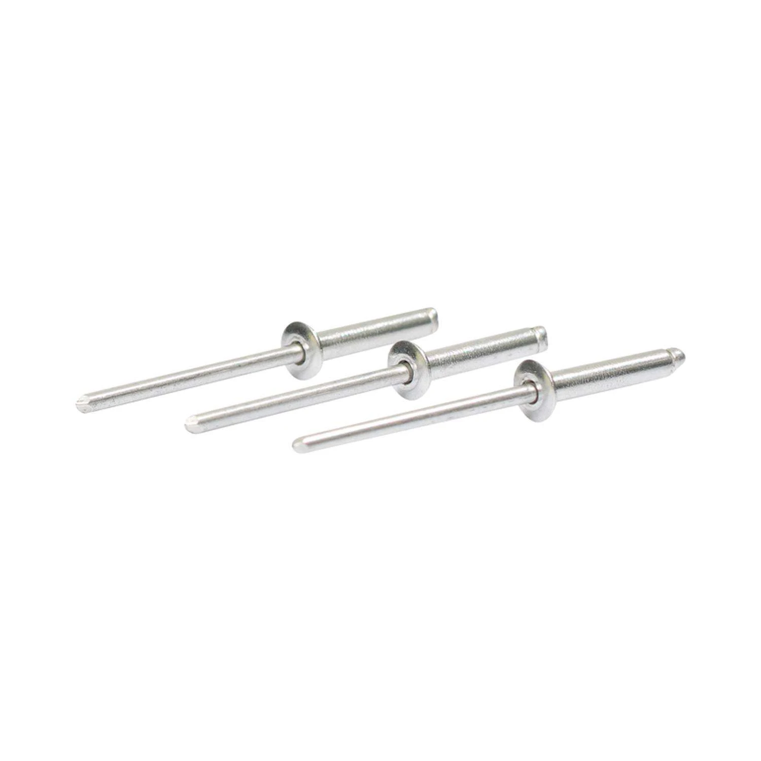 Quickly and easily produce a strong, permanent and tamper proof joint with the Arrow Fastener long aluminum rivet industrial pack. Durably constructed to prevent rivet from stripping out or vibrating loose like threaded fasteners and specially designed for joining sheet metal, aluminum, fabrics, plastics or leather and for use on metal cabinets, aluminum doors and windows, metal fixtures, automobiles, heating ducts, gutters or downspouts. Use aluminum rivets for lighter weight jobs and materials such as aluminum, fabrics, plastics, leather and more Use washers when joining soft materials or when existing hole is oversize Compatible tools – RHT300, RH200S, RL100K, RT187M and RT90P Medium holding strength High corrosion resistance