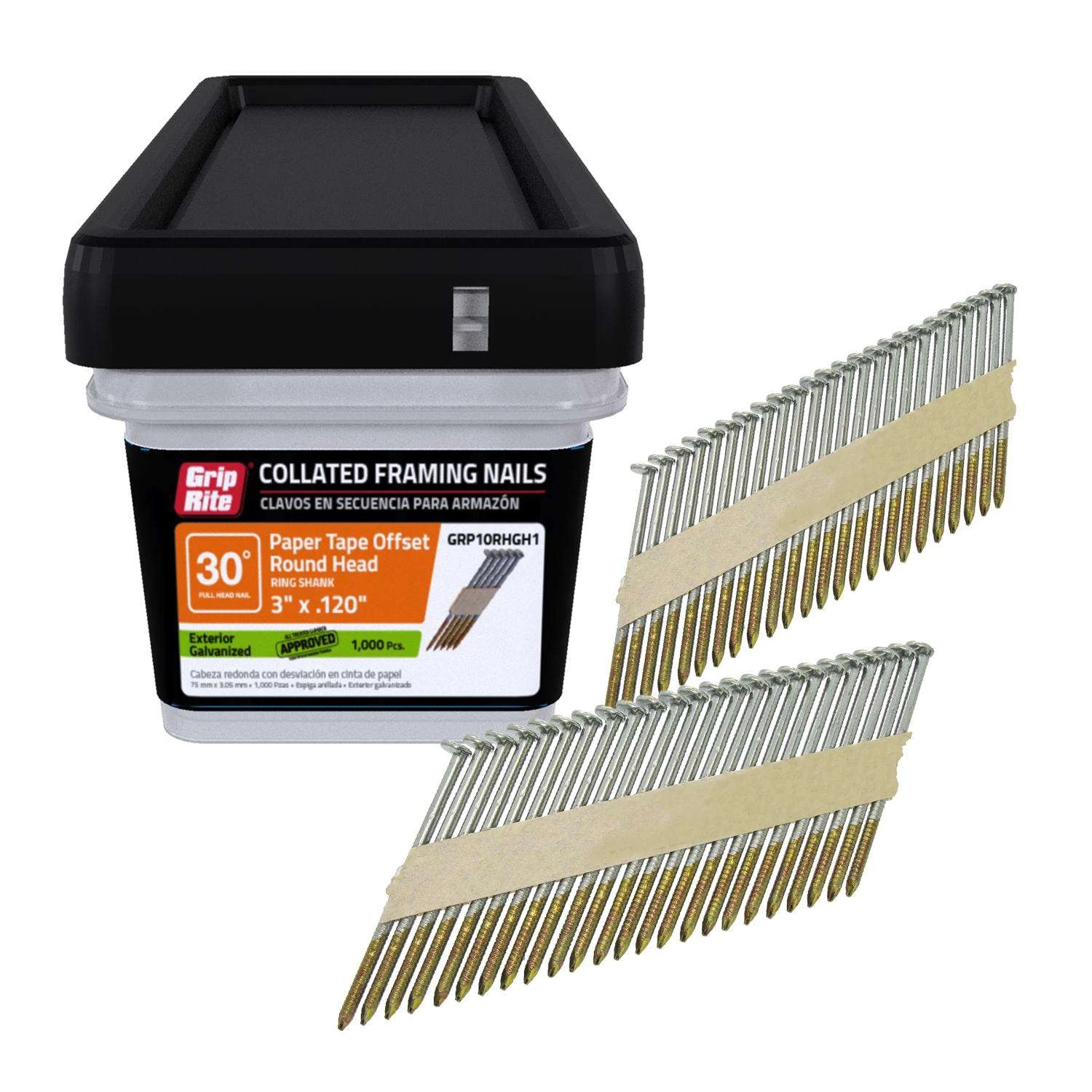 Grip-Rite 3 In. 11 Ga. Angled Strip Hot-Dip Galvanized Framing Nails 30 Deg 1000 Pk